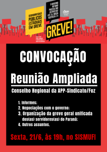 APP-Sindicato/Foz convoca educadores(as) para reunião do Conselho Regional nesta sexta